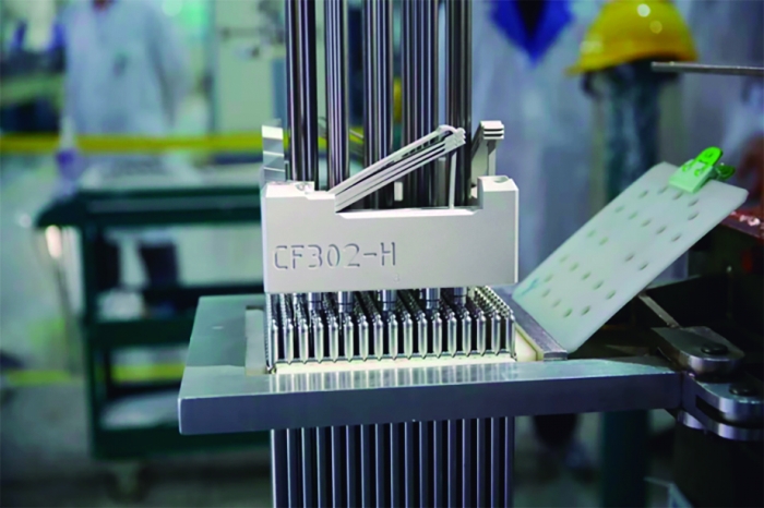 在中核建中智能制造车间,记者看到,西部新锆的N36锆合金管已通过自动化方式装入数块二氧化铀陶瓷芯块,化为一根根核燃料棒;随后,定位格架将264根核燃料棒整齐排列成17×17的方阵,最终组装成合格、安全的核燃料组件。