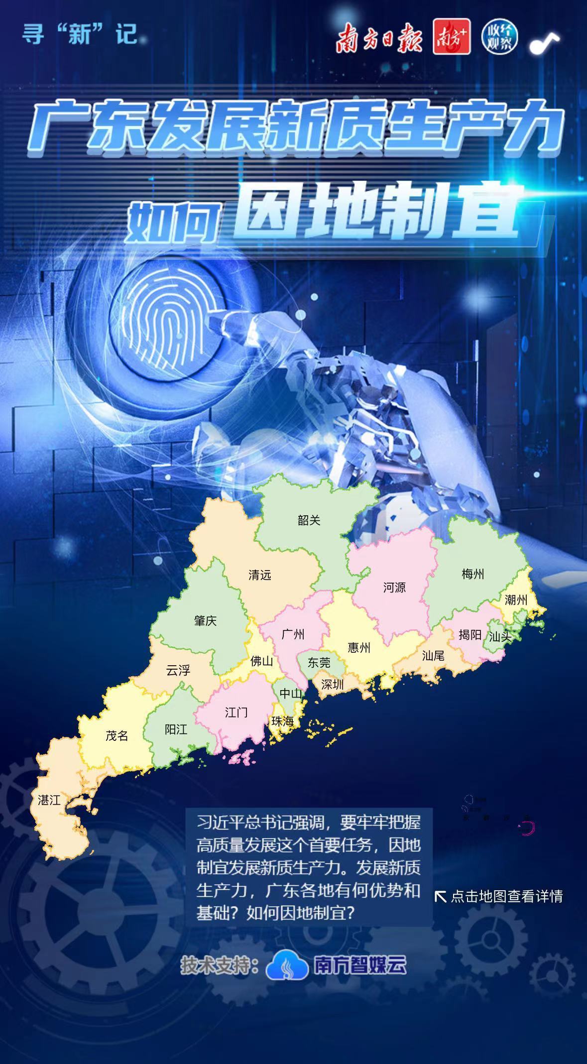 习近平总书记强调,要牢牢把握高质量发展这个首要任务,因地制宜发展新质生产力。广东各地正坚持从实际出发,根据本地的资源禀赋、产业基础、科研条件等,有选择地推动新产业、新模式、新动能发展,用新技术改造提升传统产业,积极促进产业高端化、智能化、绿色化发展。《寻“新”记》栏目持续推出广东加快发展新质生产力地市观察,敬请垂注。